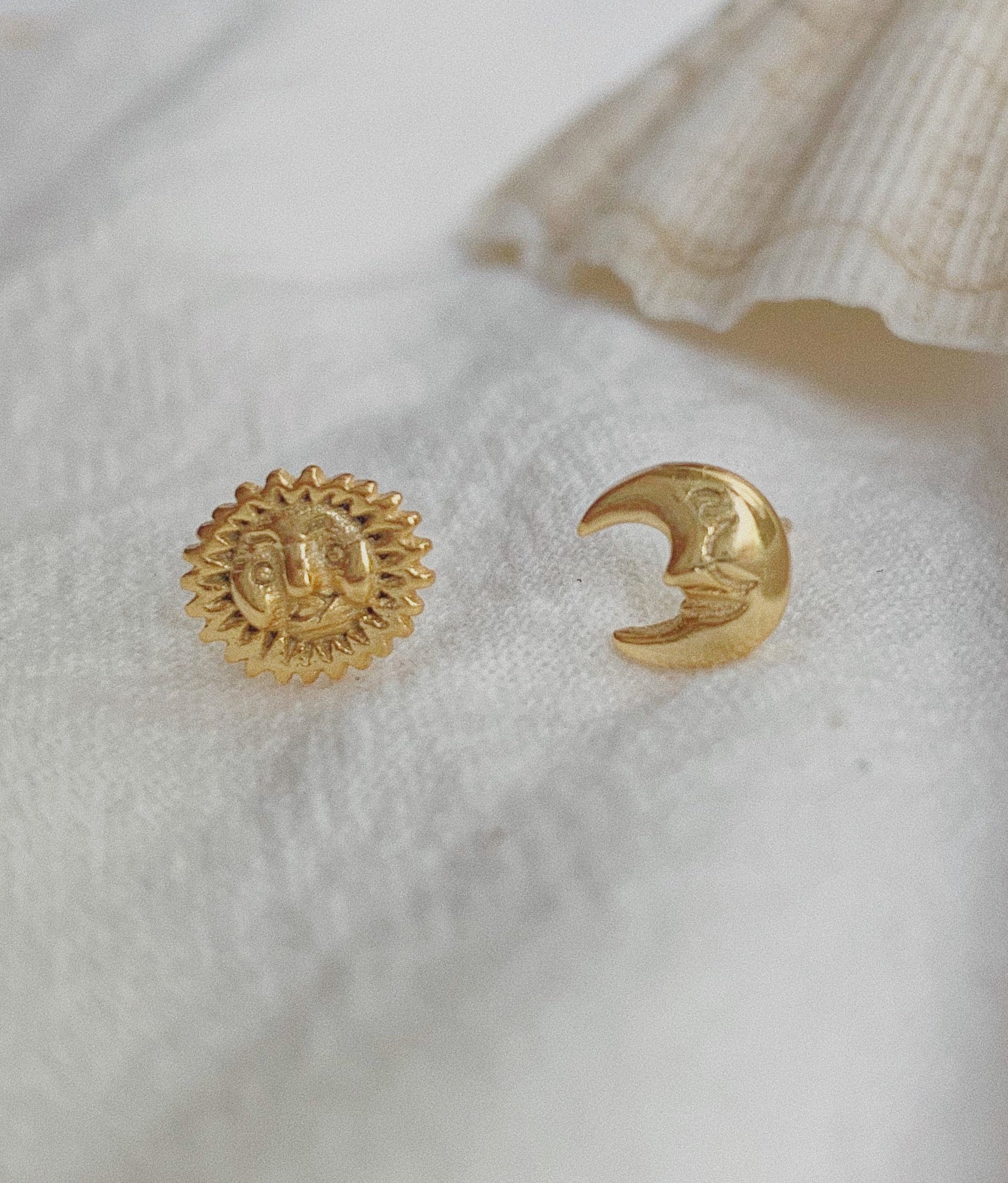 This is a pair of earrings that will remind you of a good sunny day. Solar and Luna mean Sun and Moon in the Latin language. They are so dainty and versatile that you can wear them all the time.