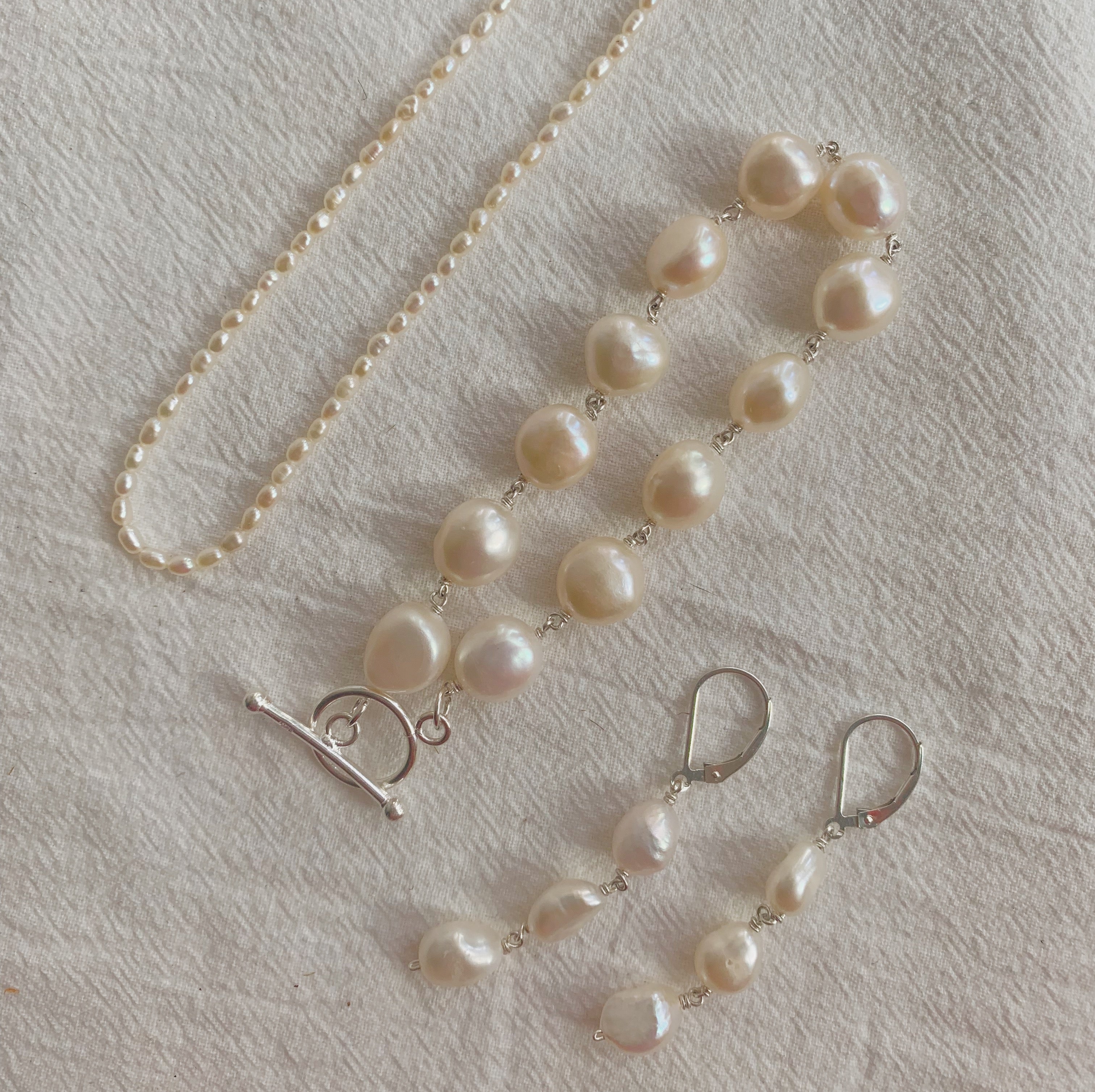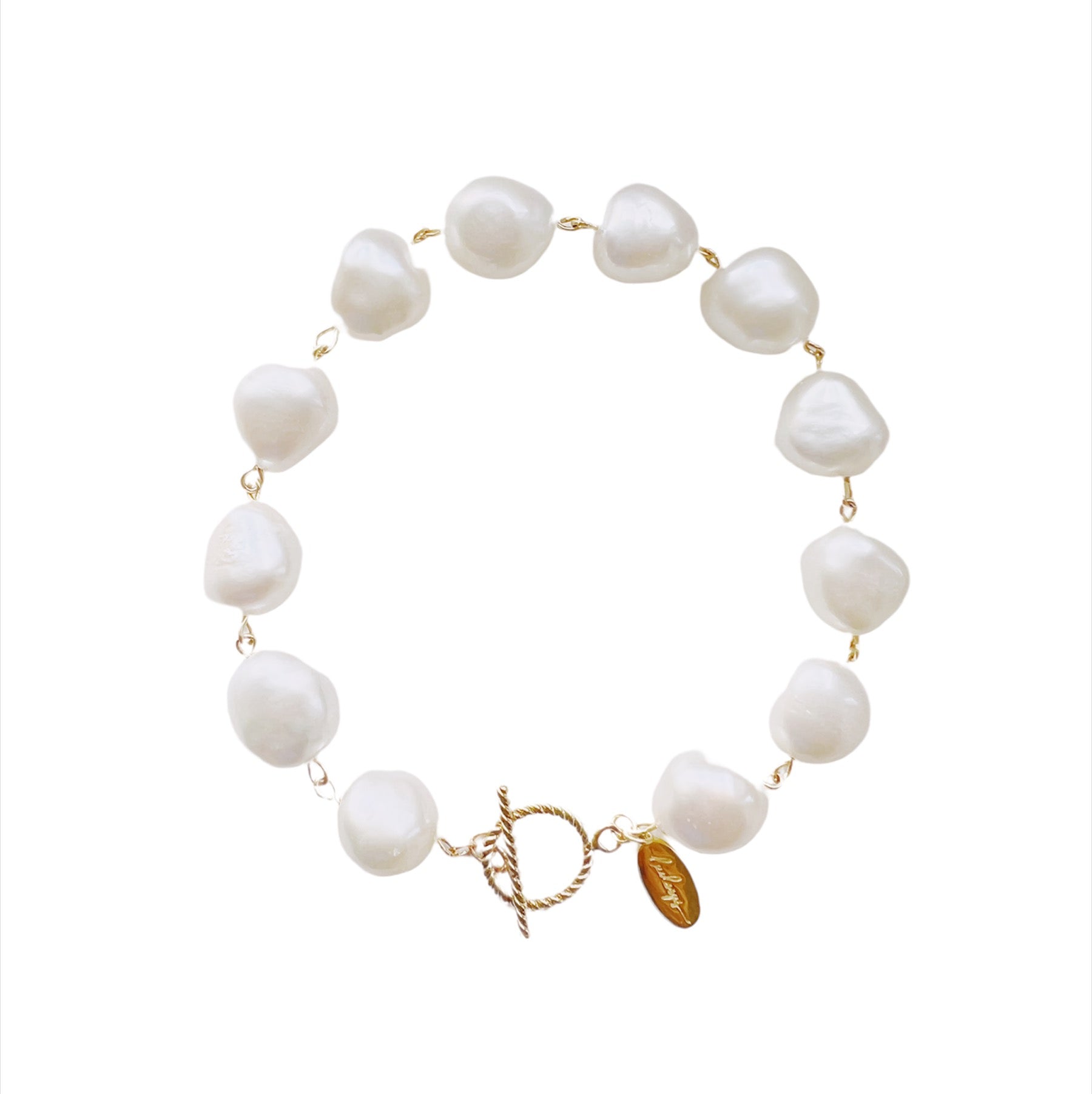 Freya is a classic pearl bracelet made of chunky potato shape Keshi pearls. If you happen to be a classic and vintage lover, she will be your perfect choice for a bracelet! Freya can be such a unique piece and your daily staple. She goes perfectly with our Raindrop Earrings.