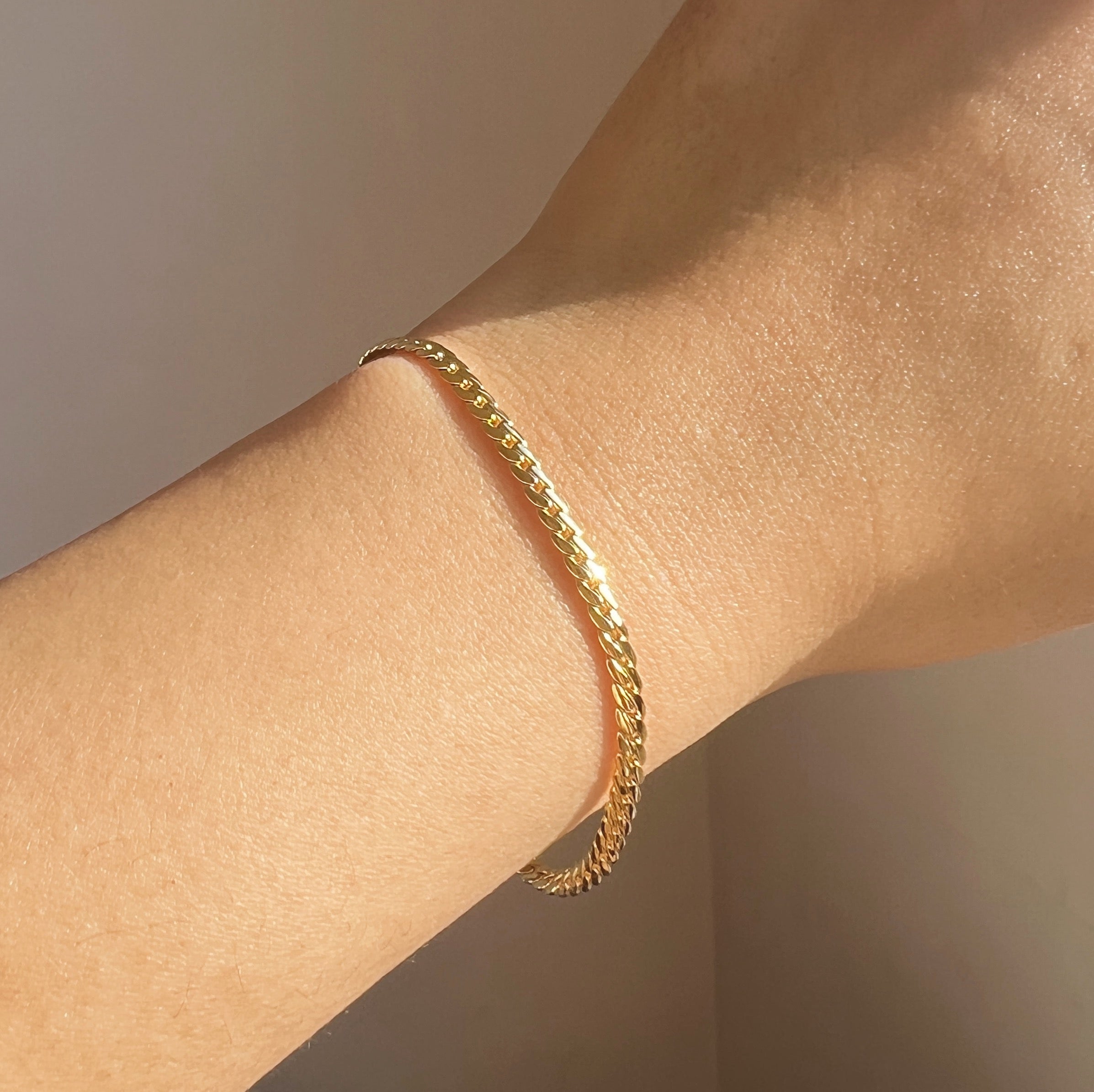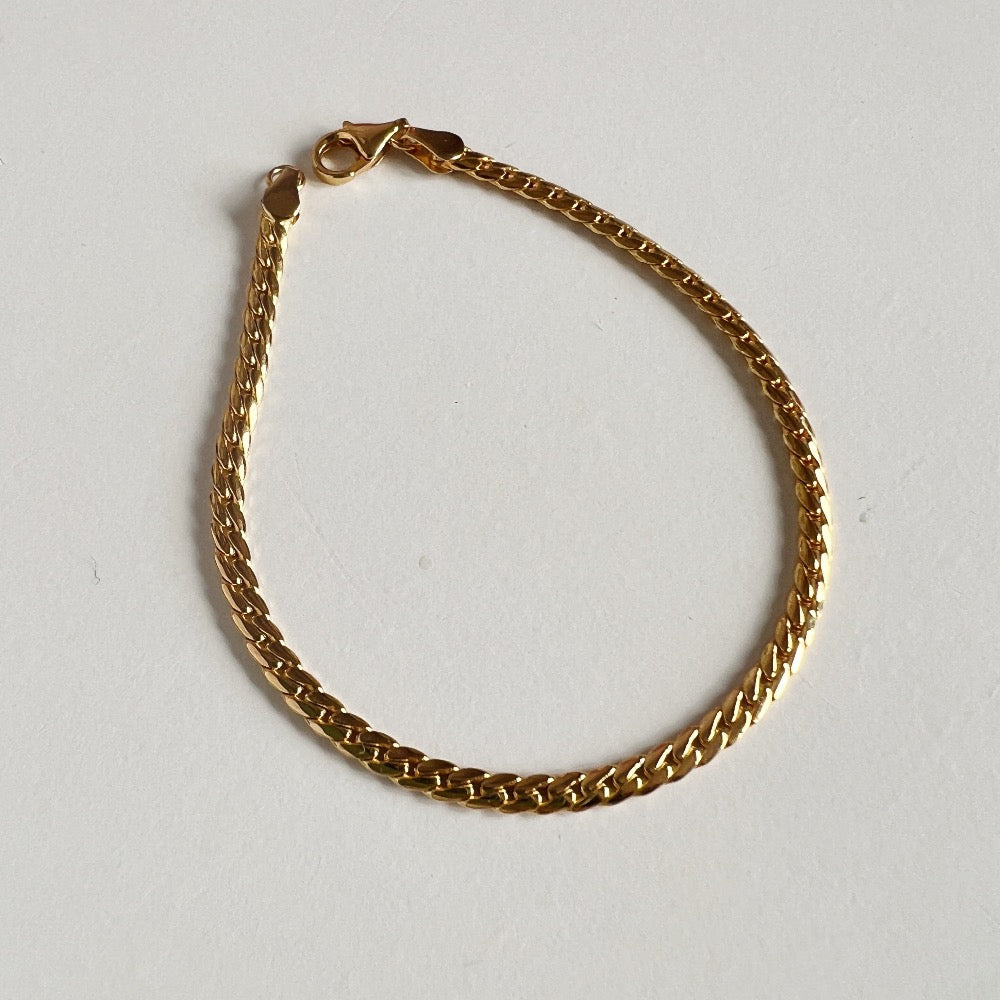Say hi to our bold and stylish Harley Curb Chain Bracelet - the perfect accessory to add a touch of playfulness to your look! Made from high-quality sterling silver, plated with 18K gold, this bracelet features a chunky curb chain design that's as sturdy as it is sweet. With its easy-to-use lobster clasp, you can put it on and take it off in a snap, while the adjustable length ensures a comfy fit for any wrist size. Whether you're dressing up for a fun night out or adding some flair to your everyday style, our Harley Curb Chain Bracelet is the perfect accessory to show off your cute and unique personality.