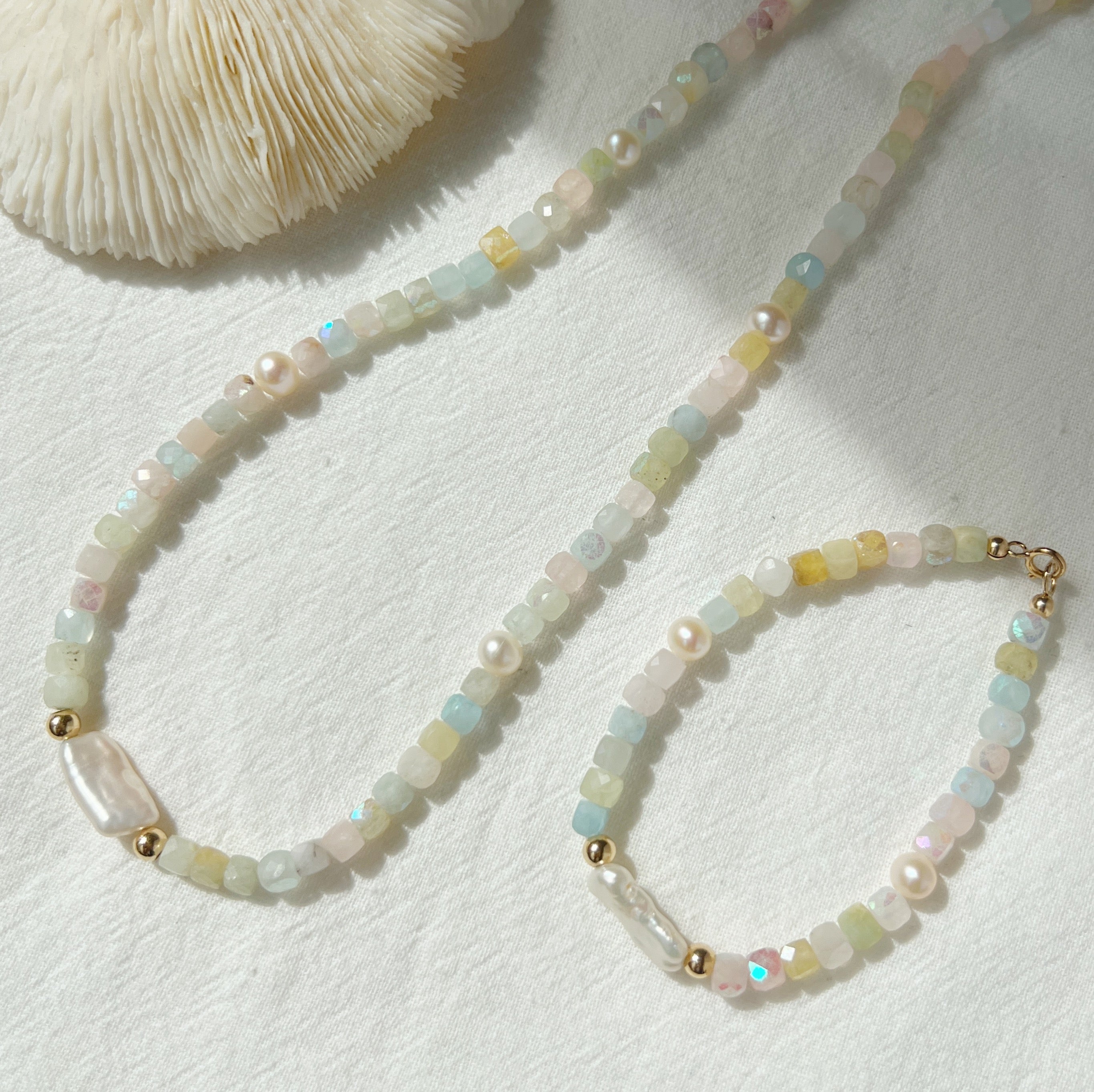 - Natural morganite gemstones and freshwater pearls