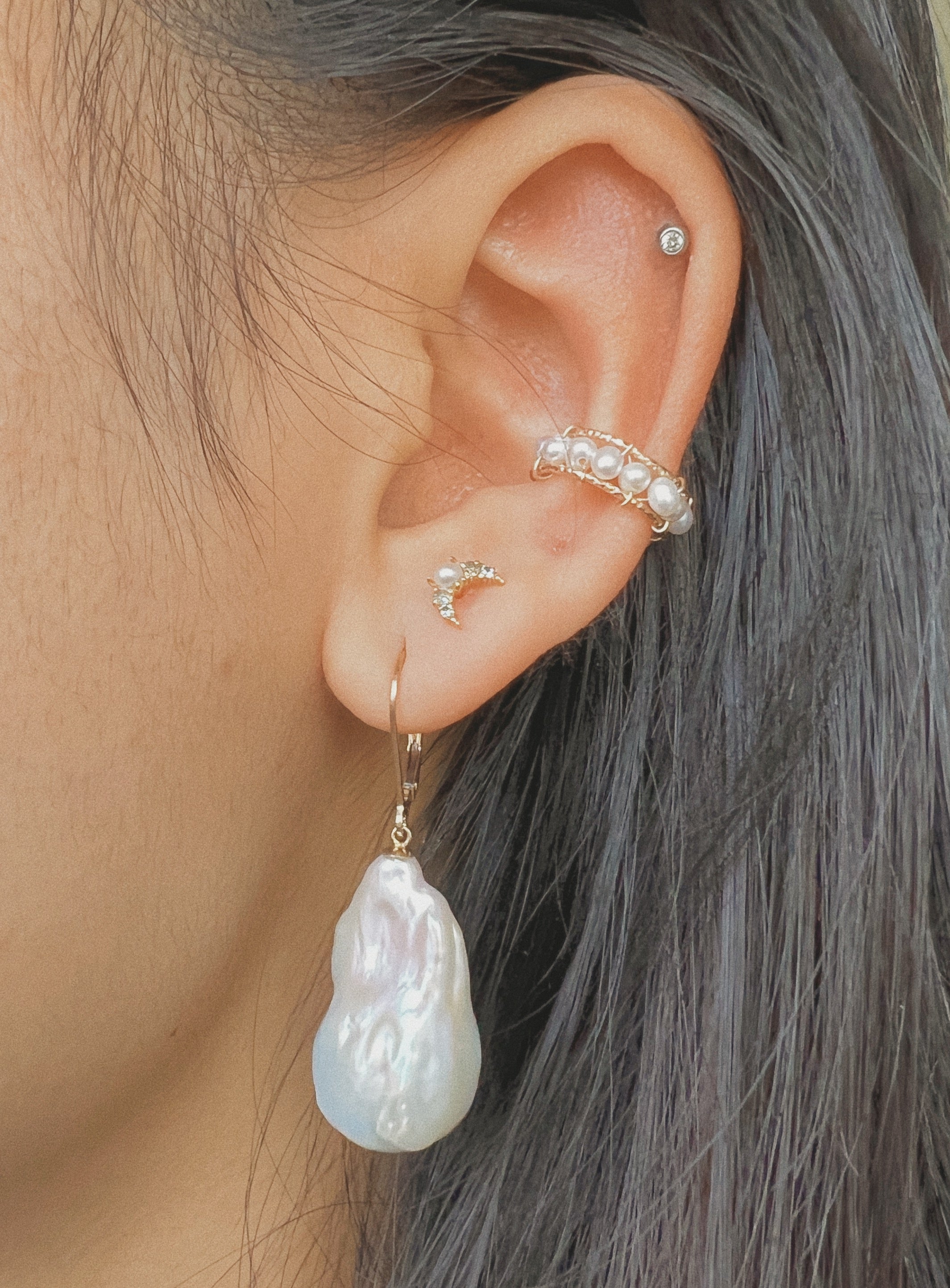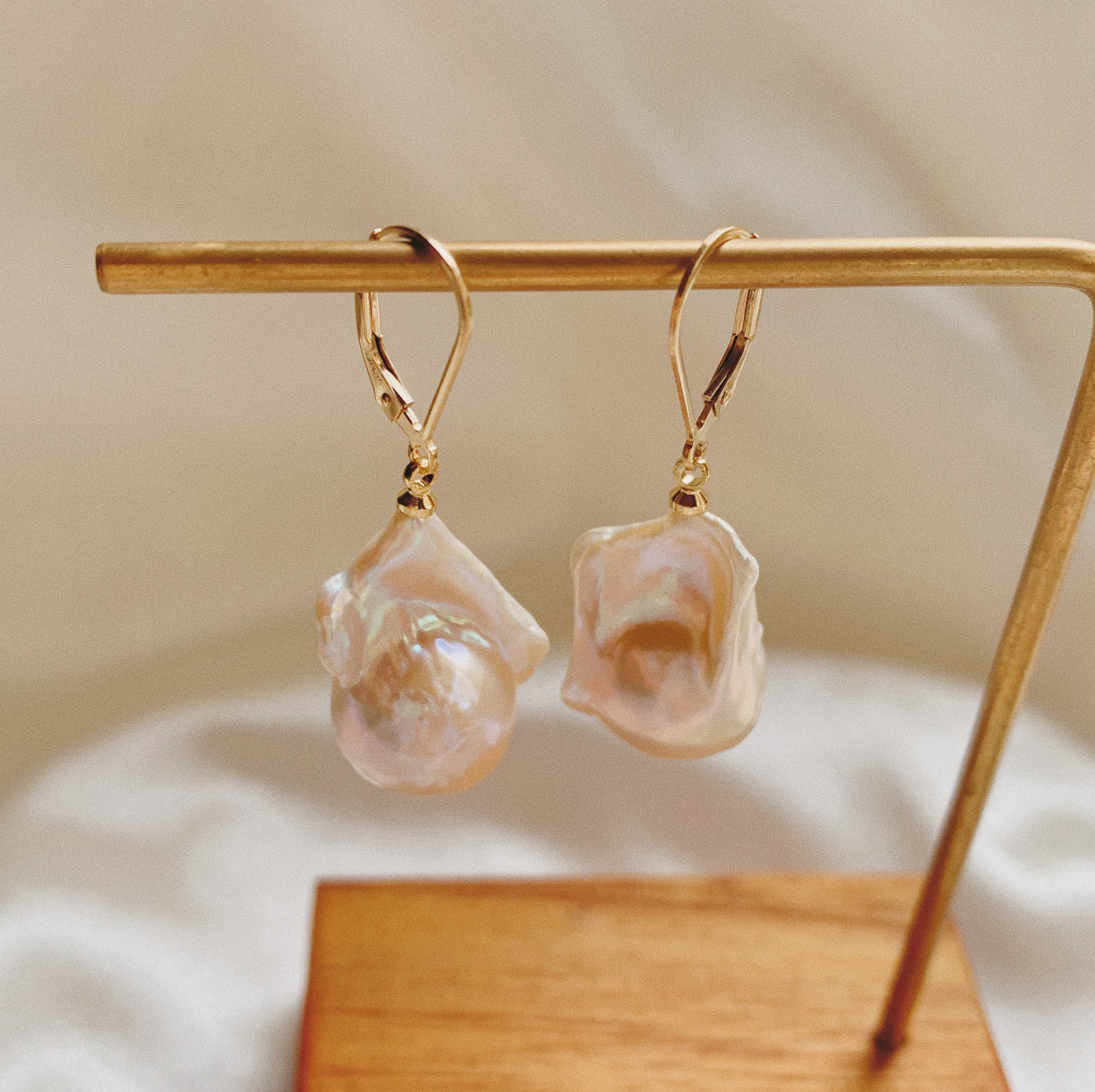 Aria is a pair of baroque pearl earrings that stand for an elegant and classic vibe. She is much-have for any bold vintage lovers and I am sure she will be your staple earrings in your jewelry box. A perfect match to our Khloe Baroque Pearl Necklace