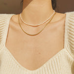 It is made from high-quality sterling silver, providing both durability and timeless elegance. Additionally, the necklace is plated with 2.5 microns thick 18 carat gold, adding a touch of luxury and sophistication to the piece.