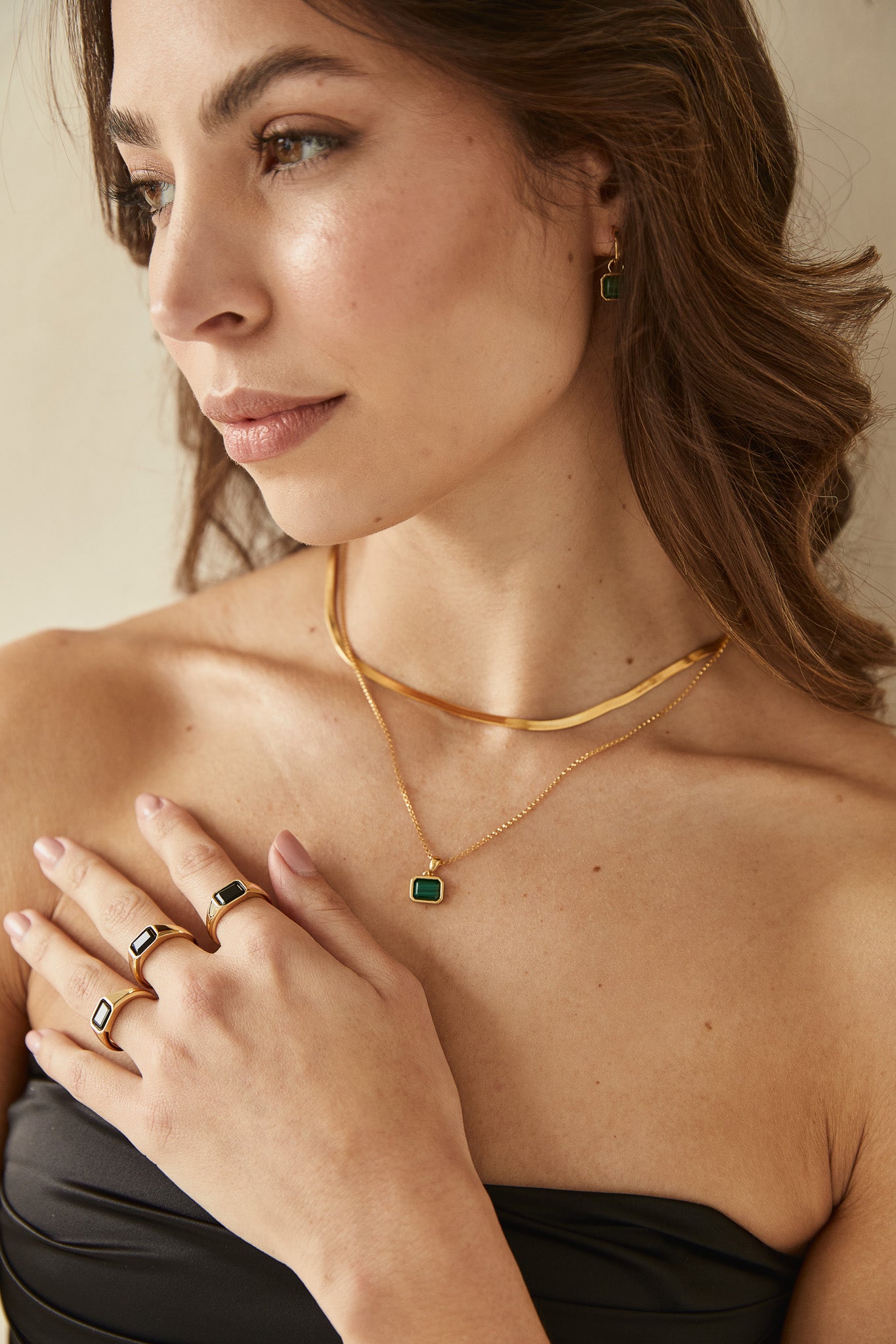Adorned with the transformative energy of malachite, this charm can be effortlessly paired with any chain from our collection. Create your unique style by combining the captivating green hues of malachite with the chain that resonates with your personal taste.