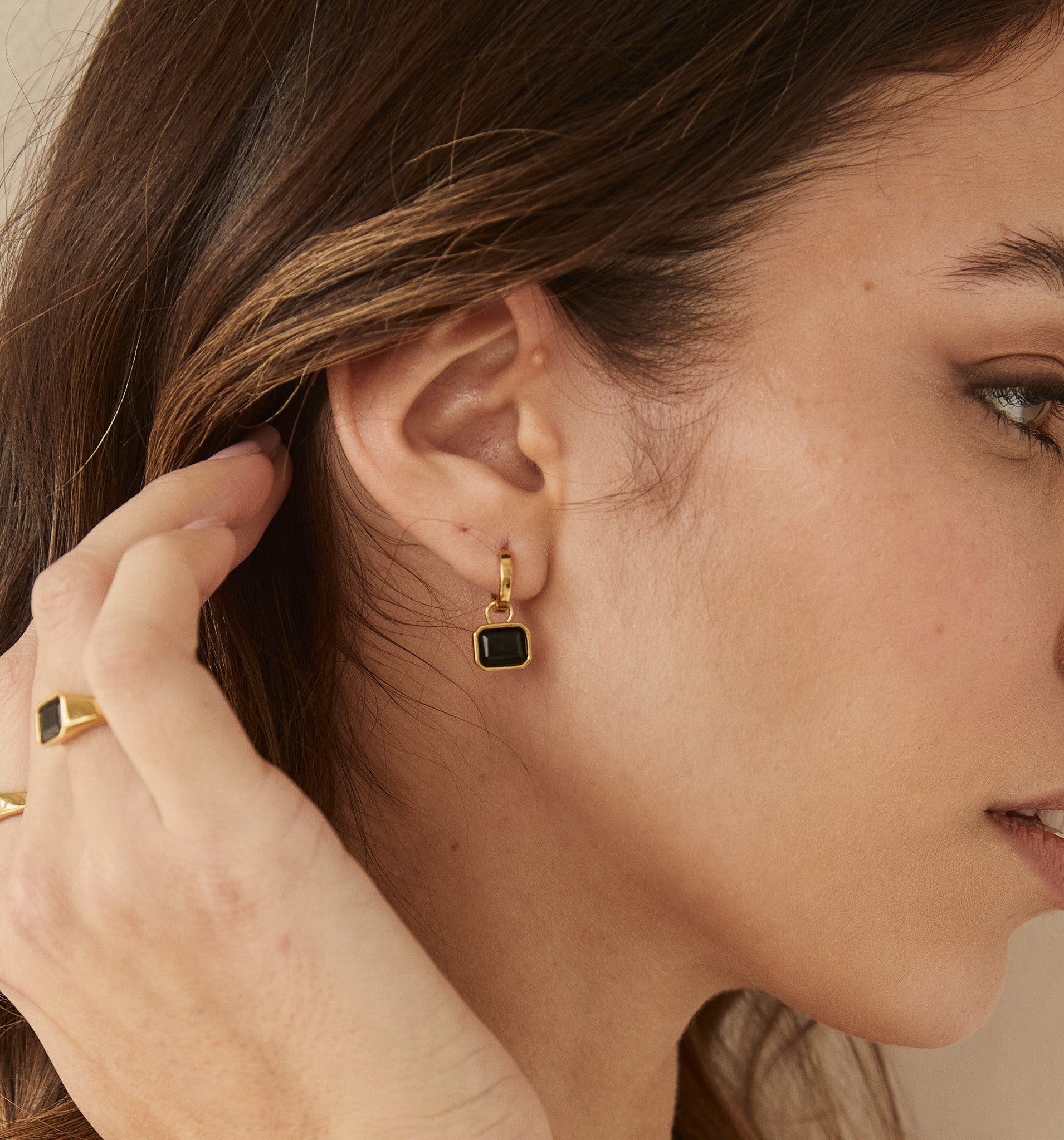 Our Black Onyx Hoop Earrings—a fusion of strength and style. Crafted with removable charms, these earrings offer versatility for any occasion.