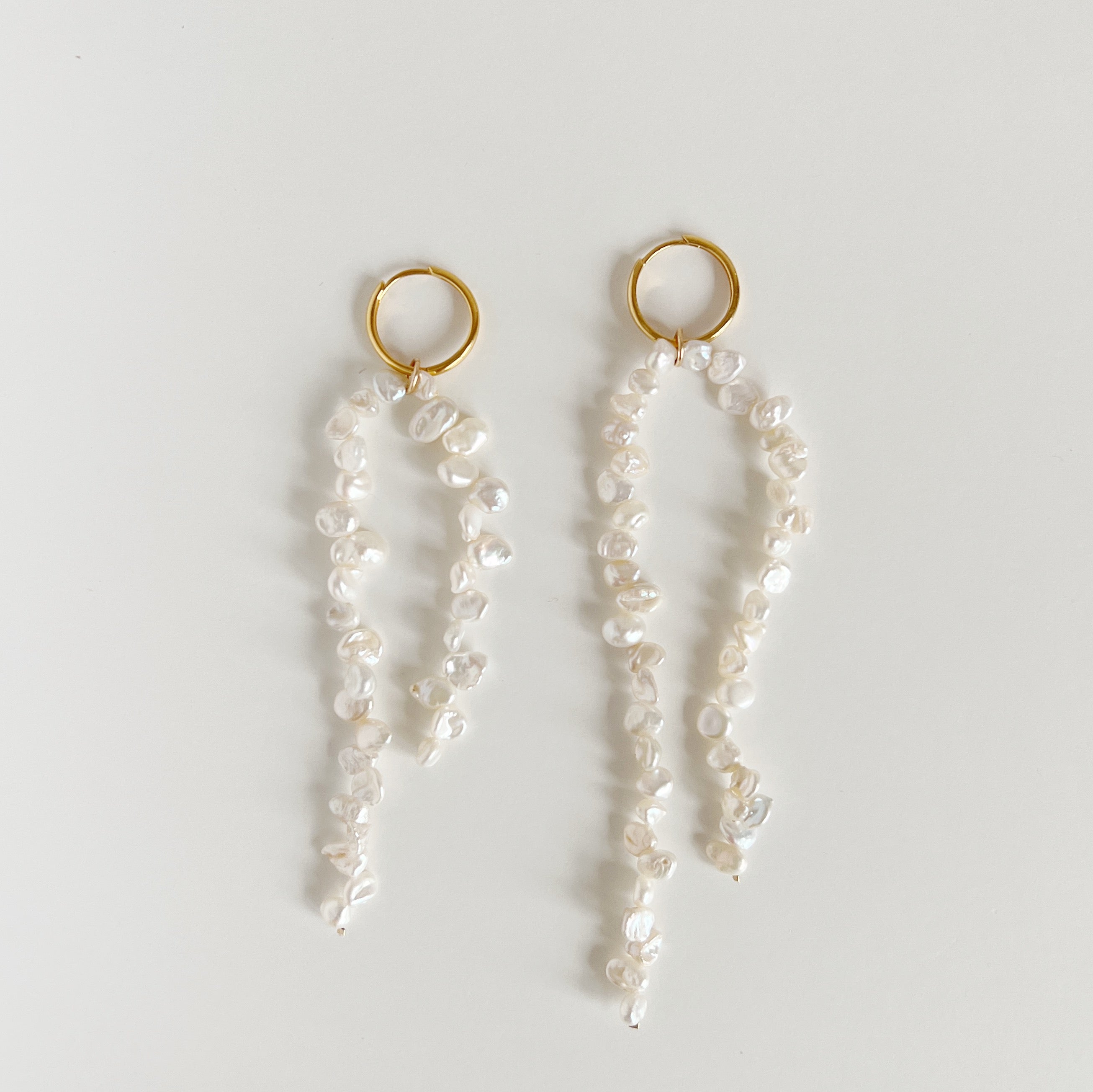 Tada! Here introducing the Ophelia pearl 18K Gold hoop earrings! A perfect match to our Elena Pearl Necklace
