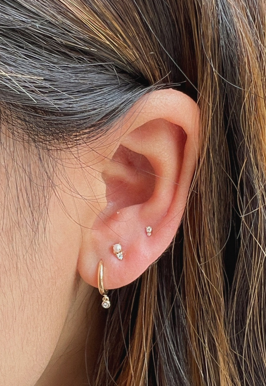 14K Solid Gold Mini Duo Diamond Studs