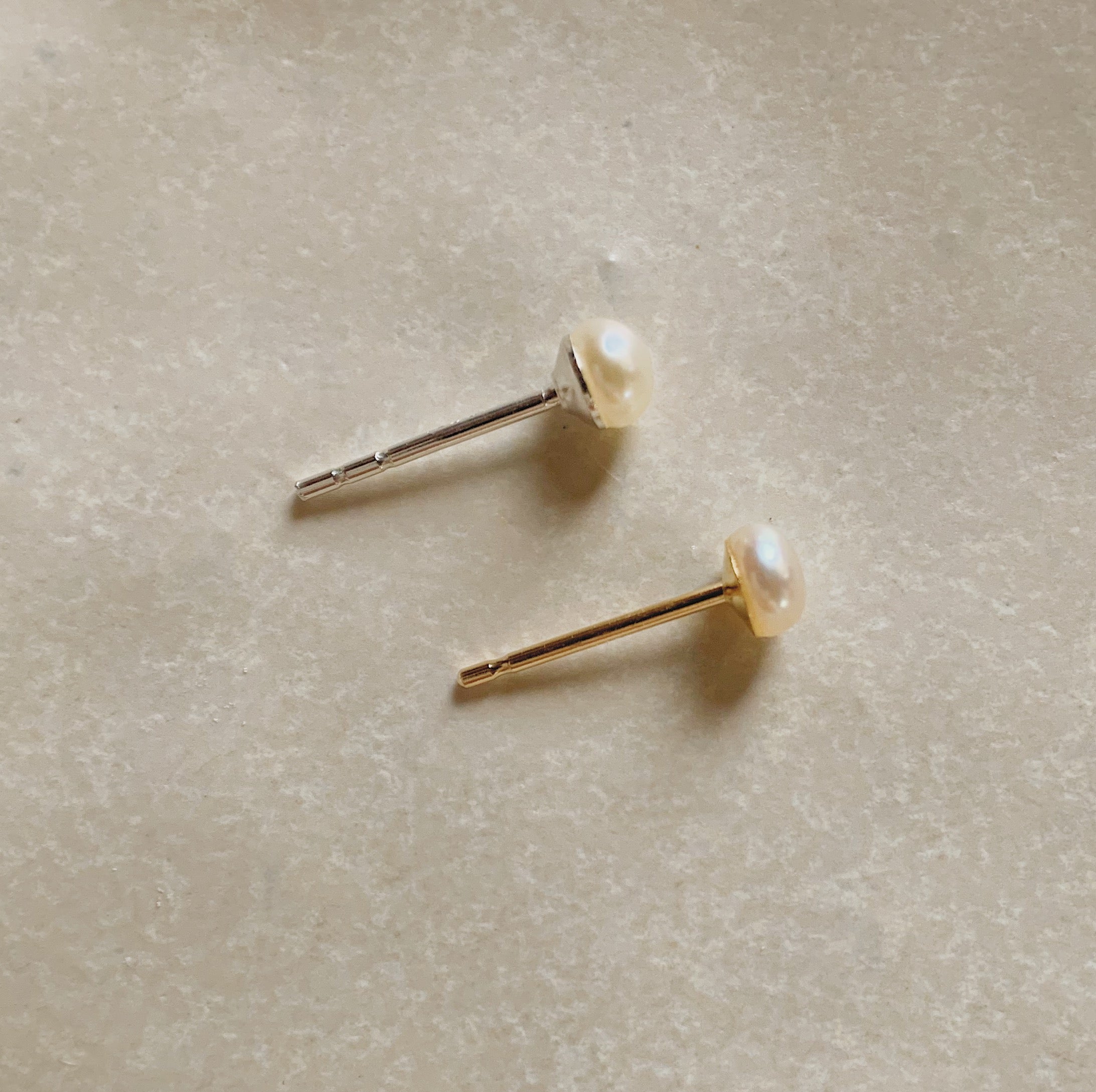14K Solid Gold Tiny Pearl Stud (1PCS)