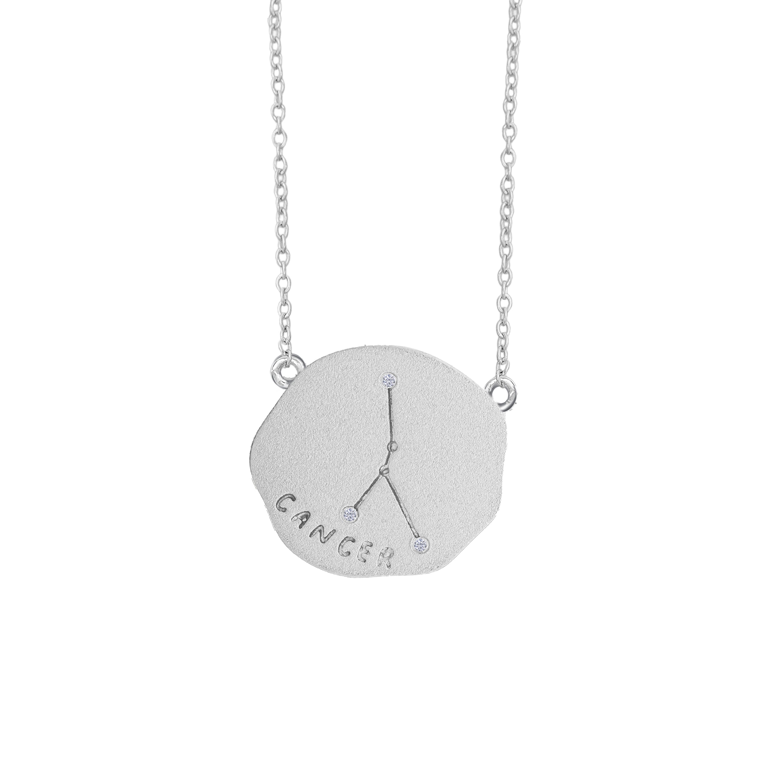 The Cancer Zodiac Sign Necklace features a little crab surrounded with shiny stars on one side and the star sign of cancer on the other side.